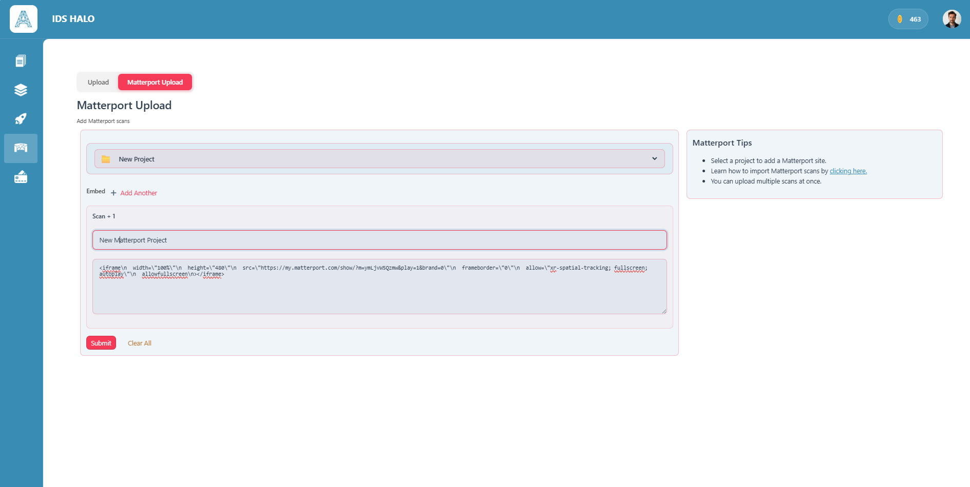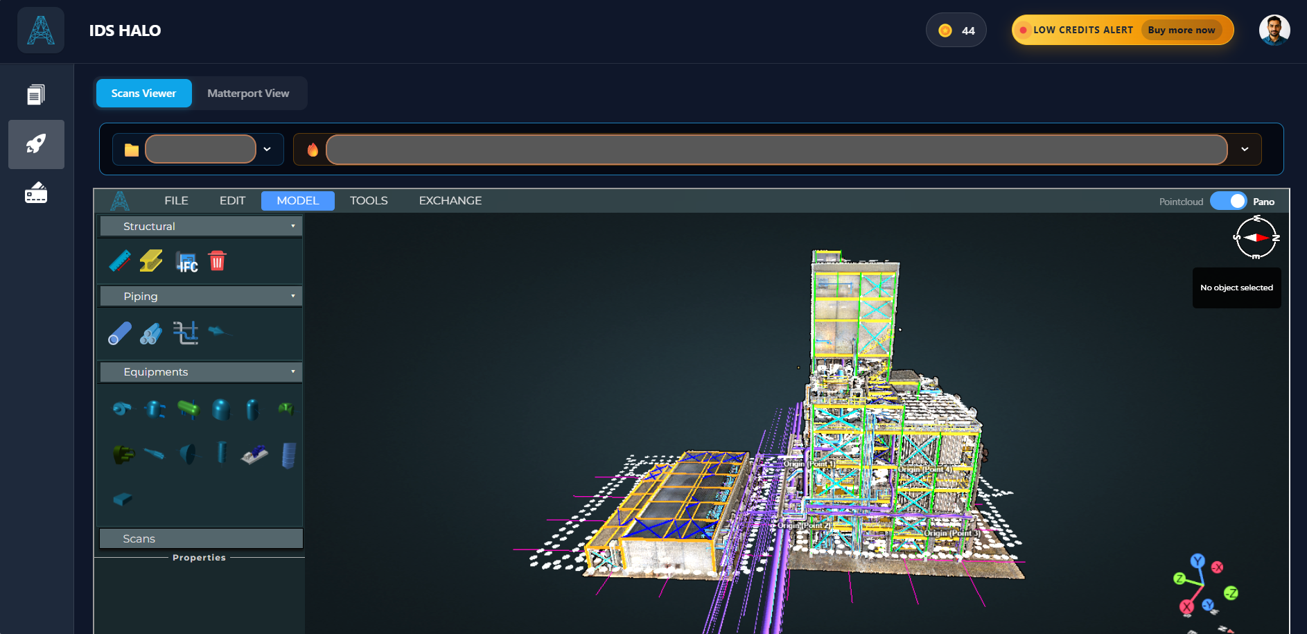 Import *.e57 scan files or connect directly to your Matterport account.